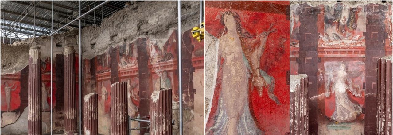 La Villa dei Misteri a Pompei ospita affreschi che rappresentano rituali legati al culto di Dioniso, il dio greco del vino e della fertilità. Questi affreschi, tra i meglio conservati dell’antichità, mostrano scene di iniziazione che probabilmente facevano parte di una celebrazione privata.